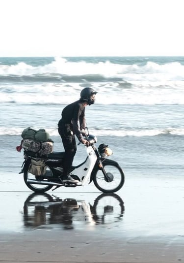 Salvaje y libre con un espíritu desgarrador y puro. Fuerza absoluta. A recorrido ciudades y países en moto grabando y ayudando a comunidades en necesidad, y escuelas.